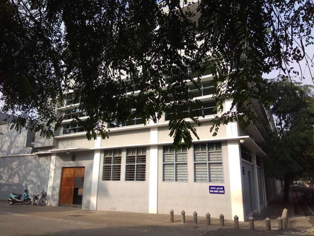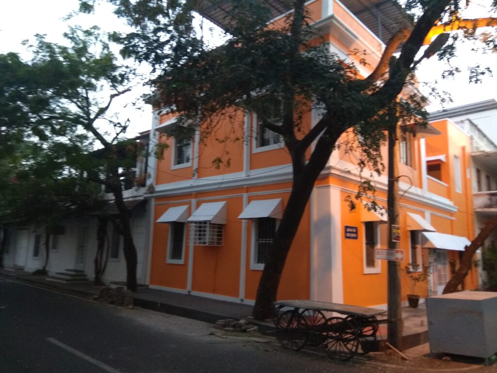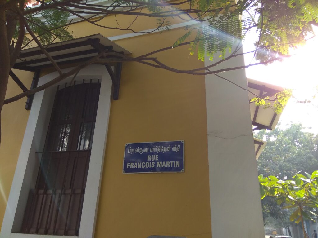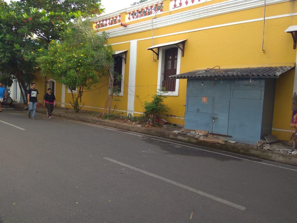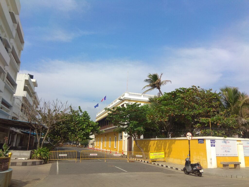 in the morning. My hotel check-in time is at 10:30.Its Raj Classic Inn, which is very close to the White town and Aurobindo ashram. Its roughly 2 km from the bus stand. I thought i should better walk instead of taking an auto/taxi. Most of the city is ethnically/culturally tamilian. Some of the streets are typically traditional Tamil ones. I had my breakfast in a South Indian hotel.The tamil part of the city has more of south Indian hotels. Finally, I reached my hotel very much before my check-in time.So I decided to stroll through the streets.The tamil part and the French part of the city can be distinguished very easily with a small canal passing between them. Also the streets of White town are amazing showcasing the beauty of french architecture with its serene lanes having yellow colored walls. Every street is named in French and all of them starts with Rue(street in French).