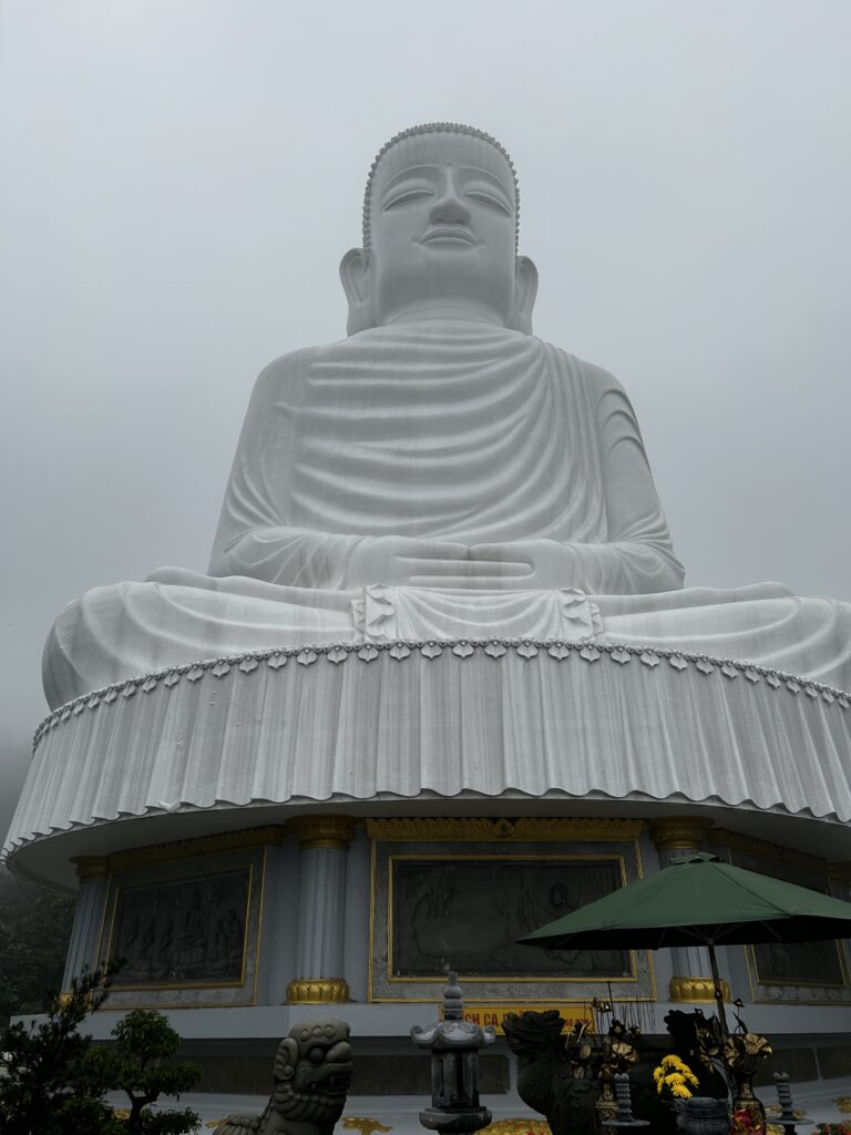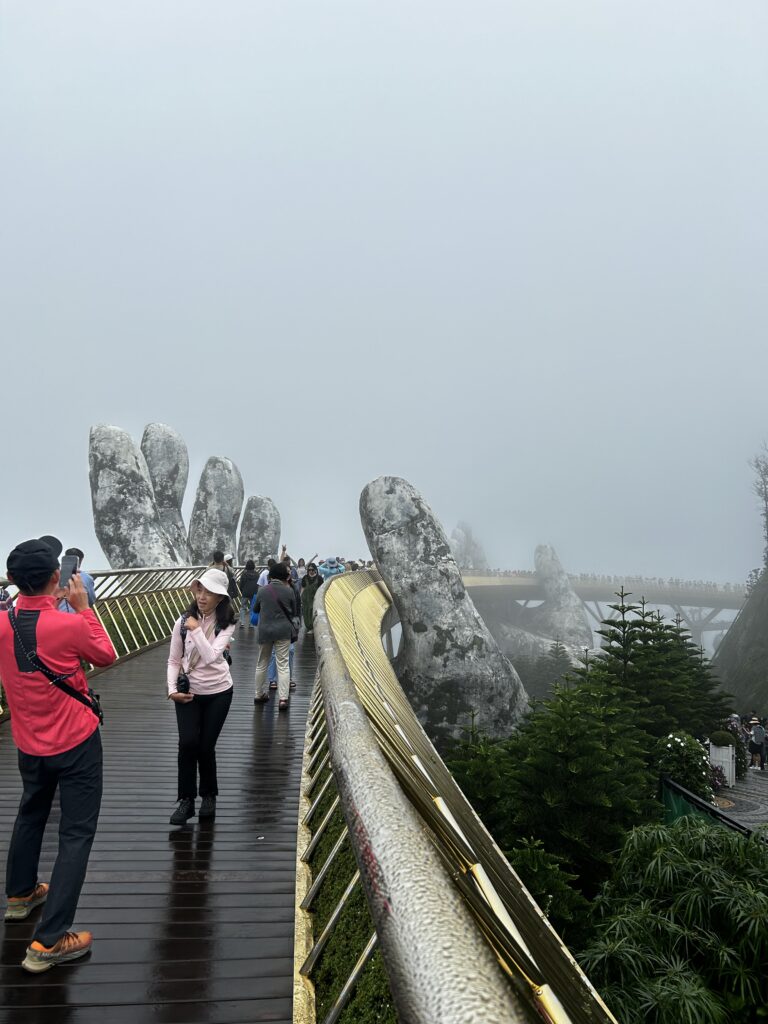 We woke up early for our trip to Bana Hills and had nothing to eat except to resort to instant noodles. Even though My Khe beach is at a walkable distance from our hotel and seen from our room, we couldn’t go due to time constraints. Bana Hills is a hill station founded by the French and is a 40-minute drive from Da Nang City. We were greeted by the longest non-stop cable car in the world and adding to that it is our first cable car experience. The experience was thrilling through the foggy hills, valleys, and slight drizzles. Our first stop was the most famous Golden Bridge. Luckily due to the drizzles and fog weather is so pleasing. Then we went to the flower garden and Buddhist pagoda. A tall statue of lord buddha in a serene and pleasant environment will definitely keep you calm and composed.