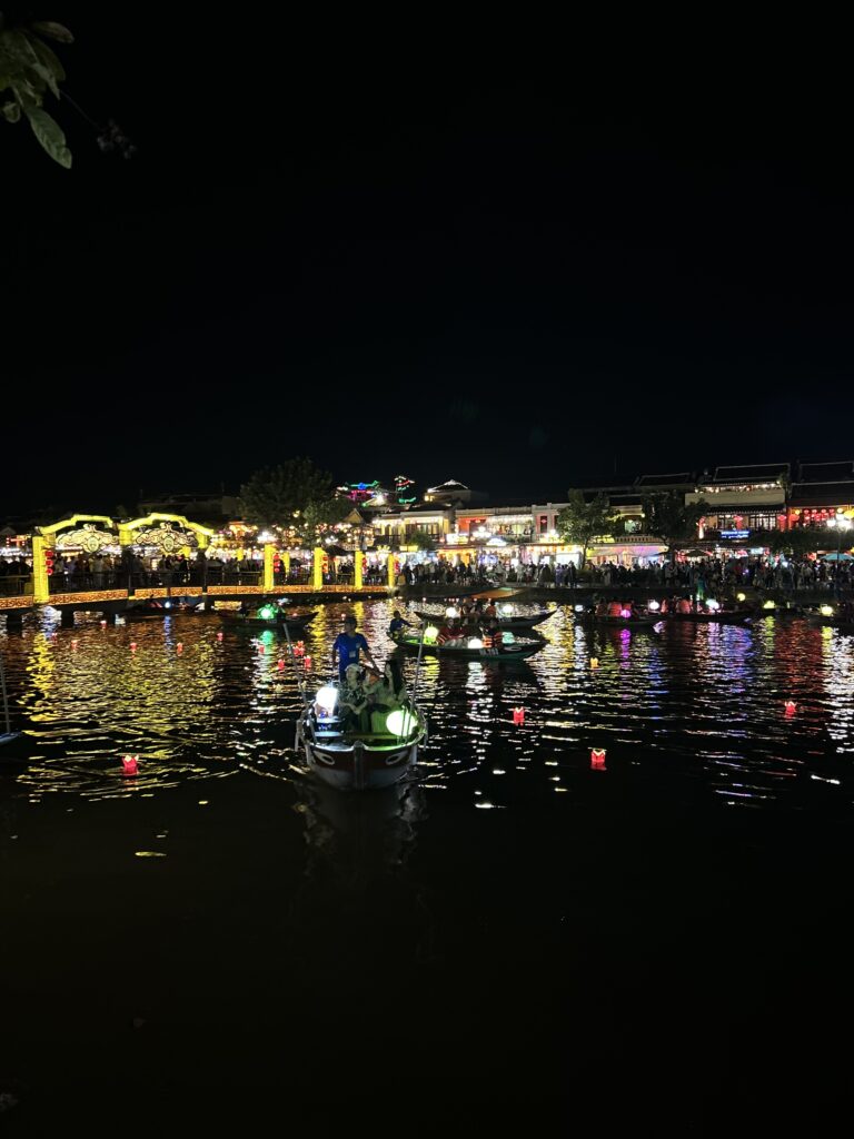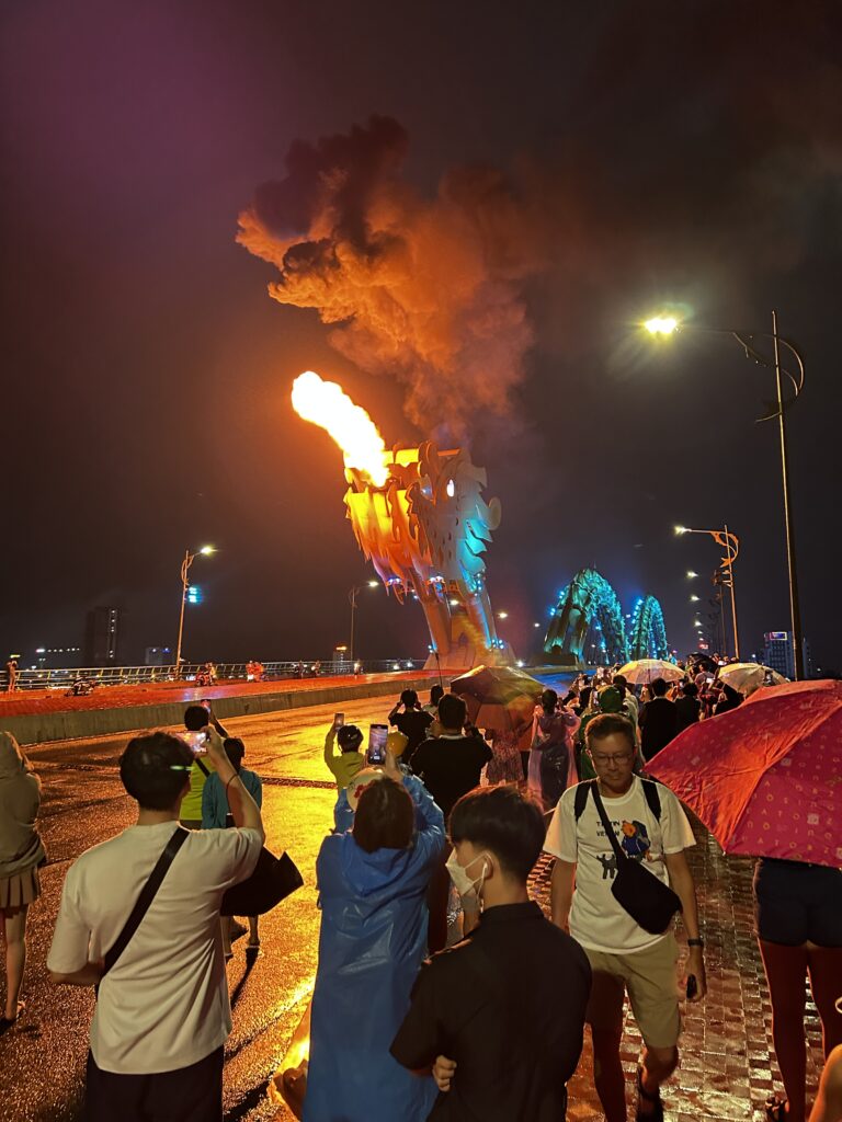 We reached the hotel and with the help of the receptionist booked a two-way cab to Hoi An – famous for its canals and lantern boats seen everywhere on Instagram. We were initially disappointed that we couldn’t add Hoi An to our plan but we were happy to finally go there. We passed by the beautiful market and as soon as we reached the canal, it was a whole different experience for the eyes with all the yellow lights in the water just like a painting. It was definitely worth the visit. We had a ride in the canal and came back to the city for the Dragon Bridge fire and water show which happens only on weekends from Friday to Sunday at 9 PM. We were lucky to be present at the right time. Traffic over the bridge was stopped during the show for 20 minutes and it was amazing.