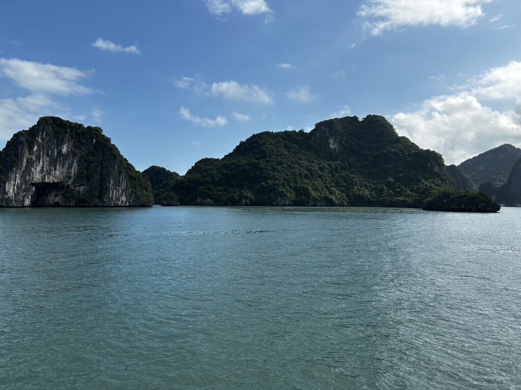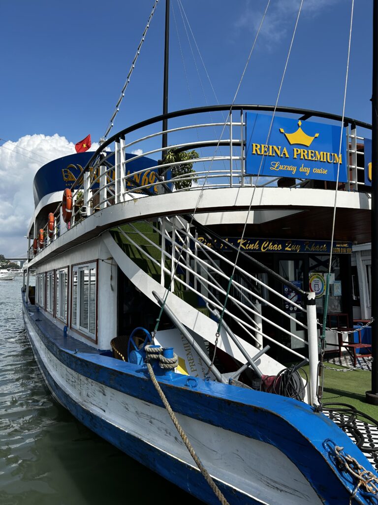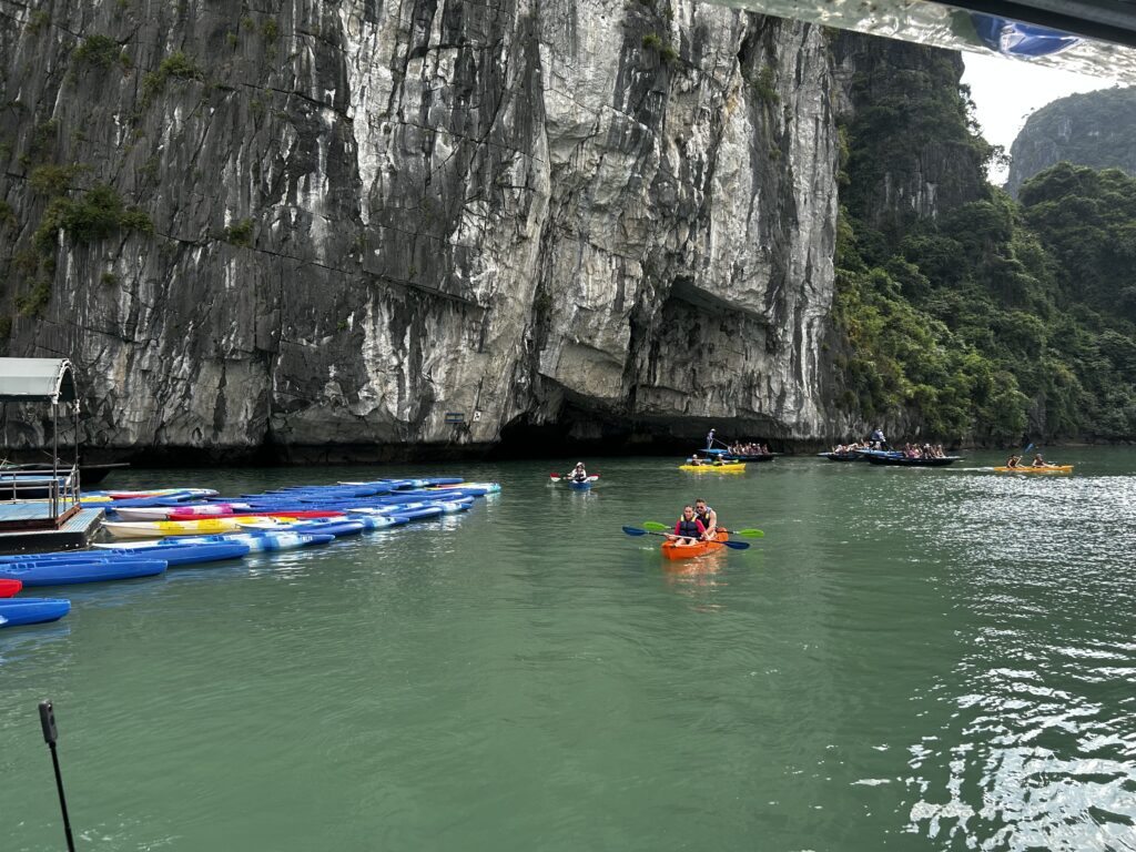 We boarded the cruise and lunch started while it was cruising towards the bay. I got to taste the sticky rice but didn’t like the taste. Seafood lovers may enjoy the food but we ended up leaving in the middle to the upper deck which has an open view and chairs to relax amid the sea breeze and party floor. Our first stop was Luon Cave where we had two options either kayaking or a bamboo boat (used to be bamboo before). We chose kayaking and the experience was really good. we had to pass through a limestone cave-like tunnel to a lake formed by hills surrounding and the whole kayak experience was captivating.