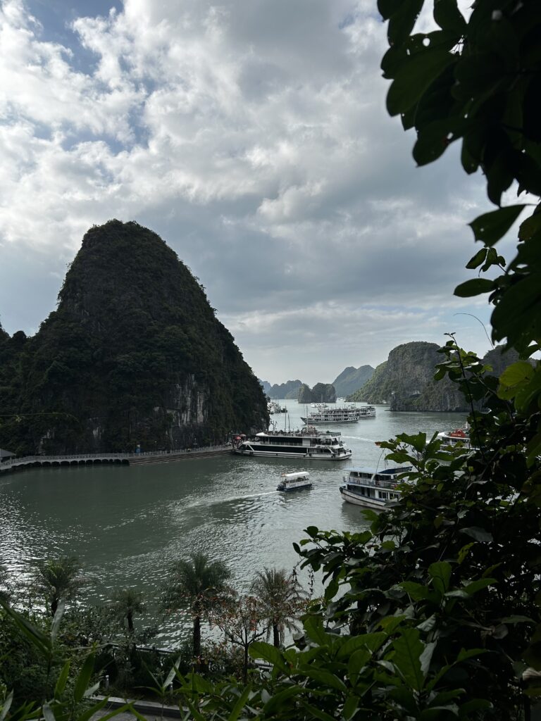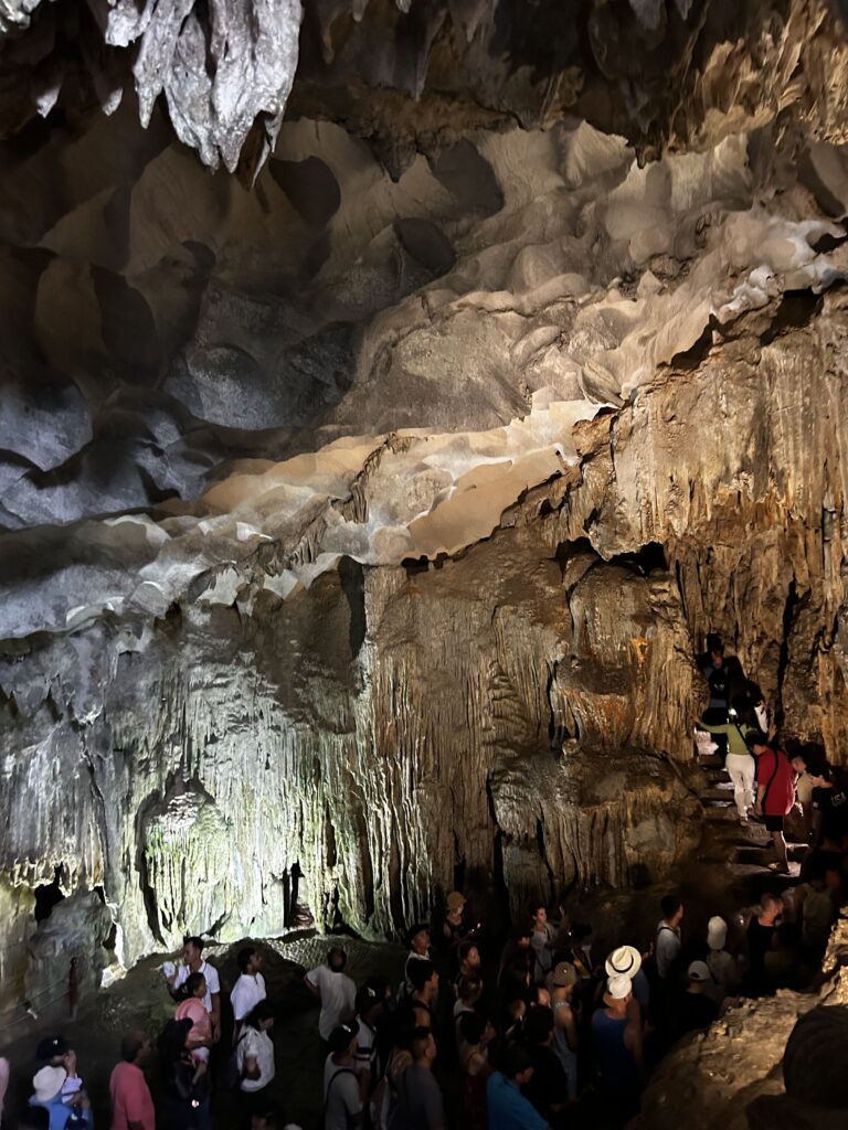 Our next stop is Sung Sot Cave/Surprise Cave. It’s a one-way cave where the cruise will drop us on one end and pick on the other end. We were warned about the long arduous journey inside the cave. Naturally formed stalagmites and stalactites millions of years ago formed amazing caves. It reminded me of “Borra Caves” in Araku near Visakhapatnam. It has multiple chambers of different sizes. The view of Halong Bay from the top of the caves is scenic like a drone shot. It was definitely worth all the effort in climbing and walking.